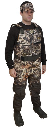 Materials: 3.5mm Neoprene with Fleece Lining; 800 gram Thinsulate Boot; HD Material on Front of Legs, Back of Legs, Seat and Covering Boots. Drakes's HD (Heavy Duty Hydro-Durance) fabric will stand up to the harshest elements and roughest abuse. Added to the seat and legs, HD not only supplies added protection, it also increases the longevity of the waders. Instinctive Features: 6 Horizontal Shell Loops--Improved No Buckle Straps--2 Inch Webbing Adjustable Belt--Reinforced Knee Pads--Vertical Magnattach Call Pouch with Breathable Mesh Bottom--Vertical Security Pocket with Waterproof Zipper--Internal "High & Dry" Security Pocket with Waterproof Zipper--Fleece-Lined "Against-the-Body" Handwarmer--Large Front Cargo Pocket with Magnattach Closure--Adjustable Boot-Lok for Maximum Comfort and Stability