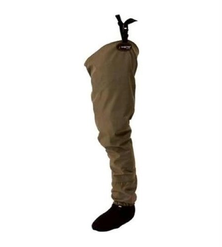 Ultra lightweight and packable hippers are cut with afort fit angled leg opening. Stay dry while wading or standing in shallow water. Constructed for durability from a poly micro shell over a vulcanized rubber coating. Wear these with your favorite wading shoes the bottom of the leg has attached gravel guards and lace hooks.Ultralight breathable microfiber outer shell 4mm Neoprene booties Attached gravel guards with lace hooks Adjustable belt leashes